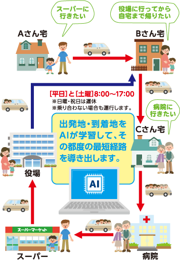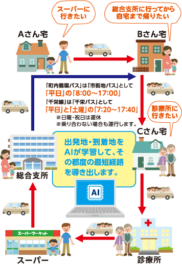 • 実証運行は、占冠線、町内循環バス、千栄線が対象で、岩内ダム線は運休となります。