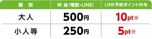 ( )金額は「小学生、障害手帳・療育手帳所有者、介護人」